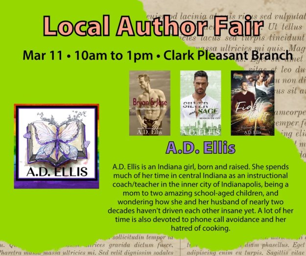 A.D. Ellis is an Indiana girl, born and raised. She spends much of her time in central Indiana as an instructional coach/teacher in the inner city of Indianapolis, being a mom to two amazing teens, and wondering how she and her husband of over two decades haven't driven each other insane yet. A lot of her time is also devoted to phone call avoidance and her hatred of cooking.